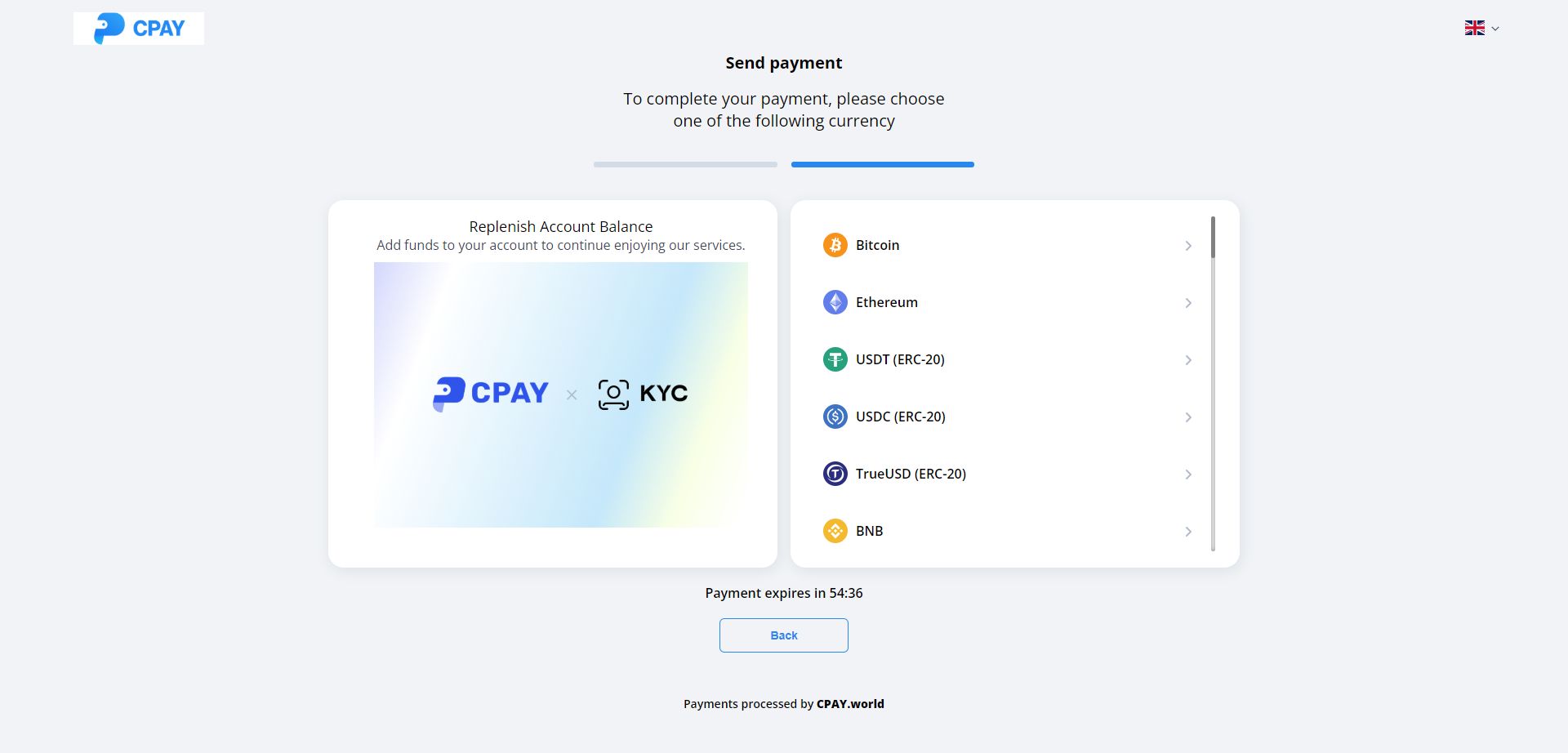 When you click on Make a payment, checkout opens to replenish the customer's account: