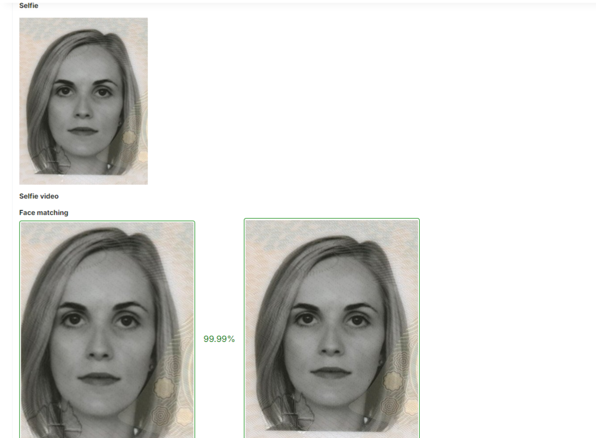 Face matching - comparison of the photo uploaded by the applicant and the one that the system read from the document.