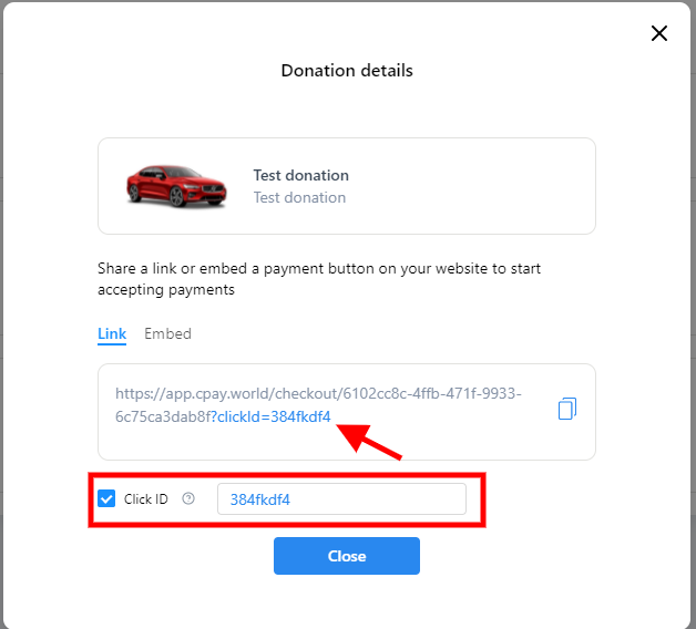 2) Added clickId to checkout, it can be your web shop order id or customer id or anything else id (only numbers and chars are allowed). This option added to transaction information and search available on it.