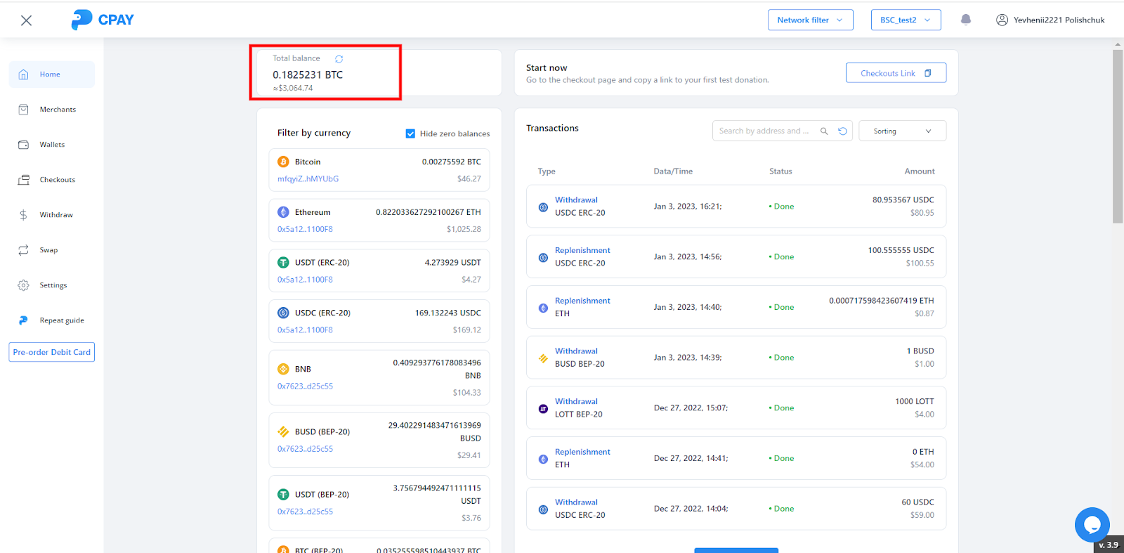 1) Added network type for tokens on Transactions/Wallets/Checkouts