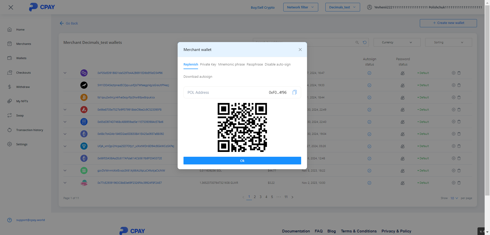 - If the wallet is created via checkout, the process does not change, the account wallet sends native currency to the client wallet, and the client wallet sends tokens to the account wallet;