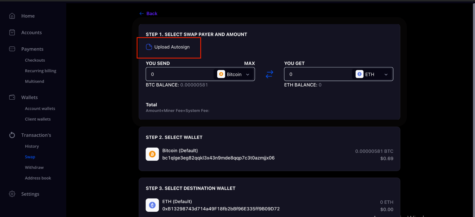 - Auto-swap - will not work, since at the moment the system itself creates a transaction for withdrawing the exchanged currency after the currency specified in the auto-swap rule has arrived at the account's wallet address.