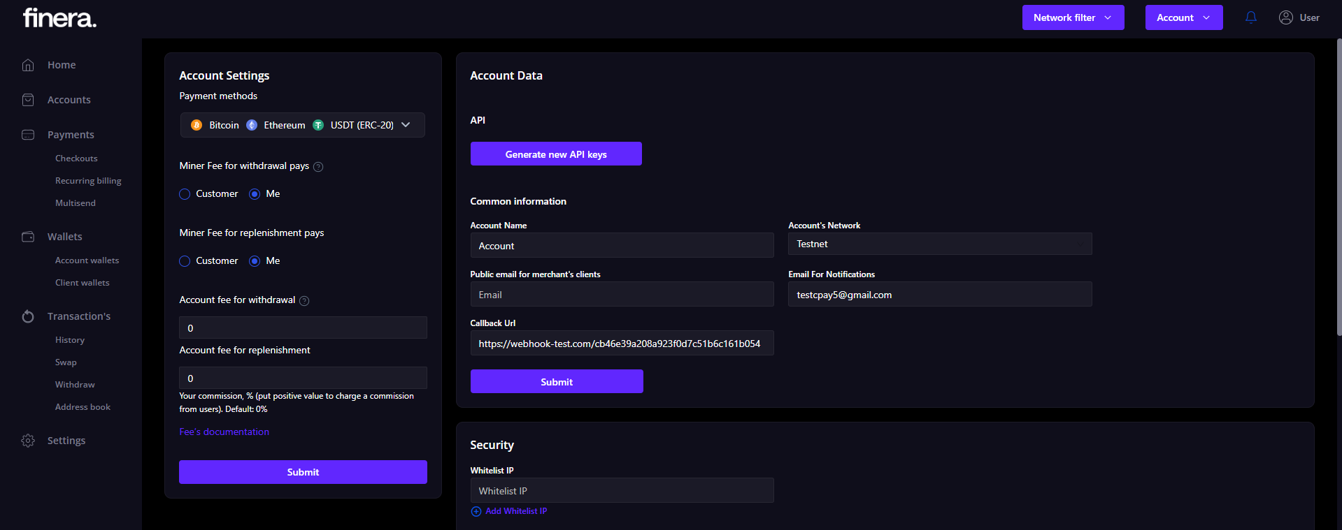 Callback Url - field for entering a route where callbacks will come after the transaction is confirmed.
