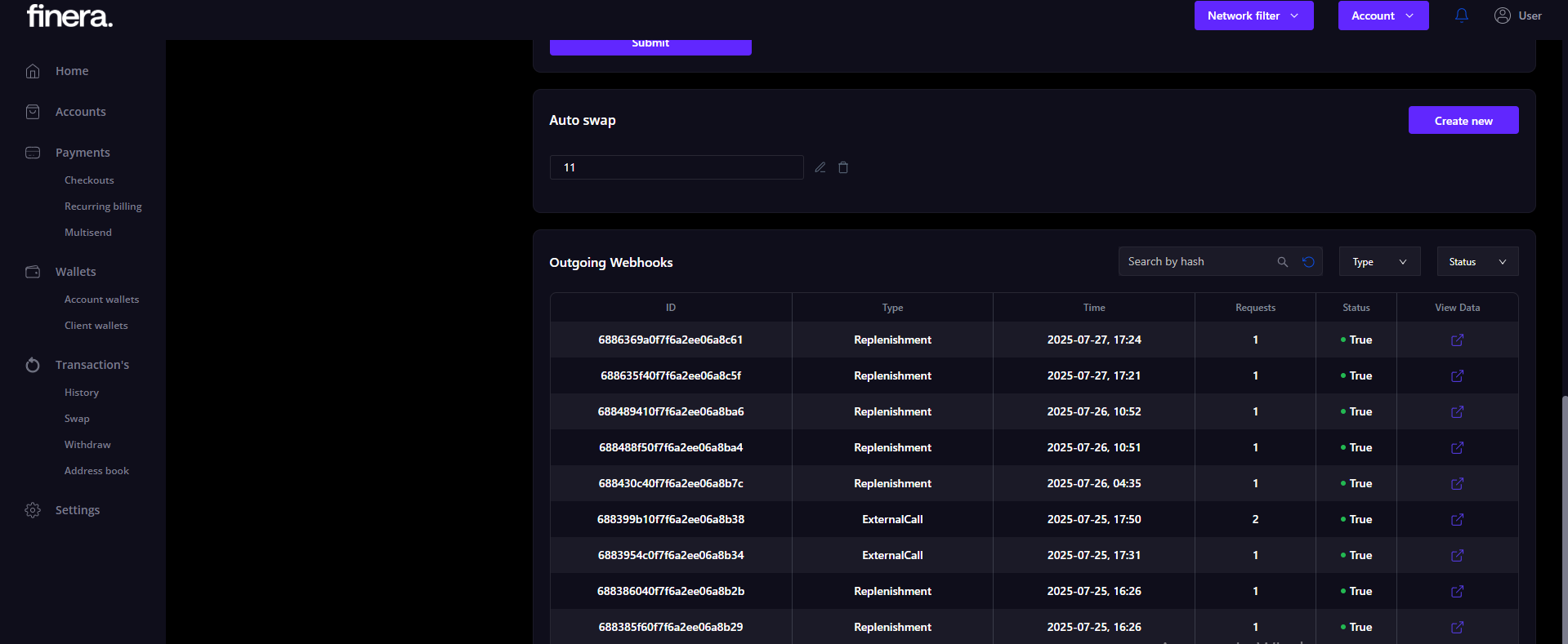 Outgoing Webhooks - list of webhooks (callbacks) of the account.