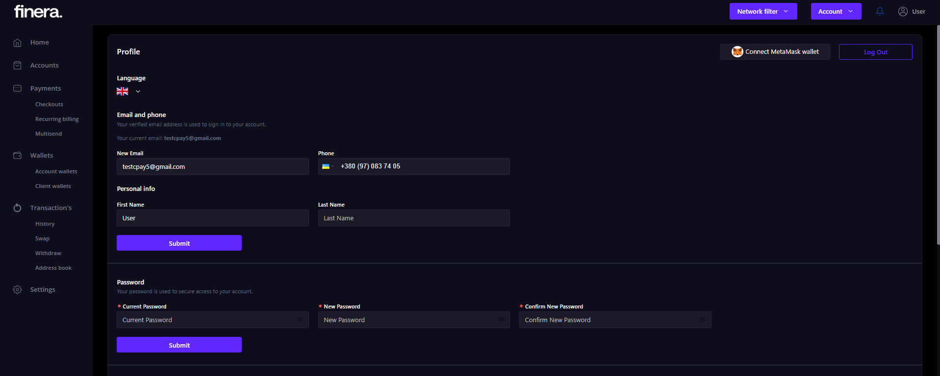 Connect Metamask wallet - the ability to connect / disconnect the Metamask wallet to enter the account to which this wallet is connected.