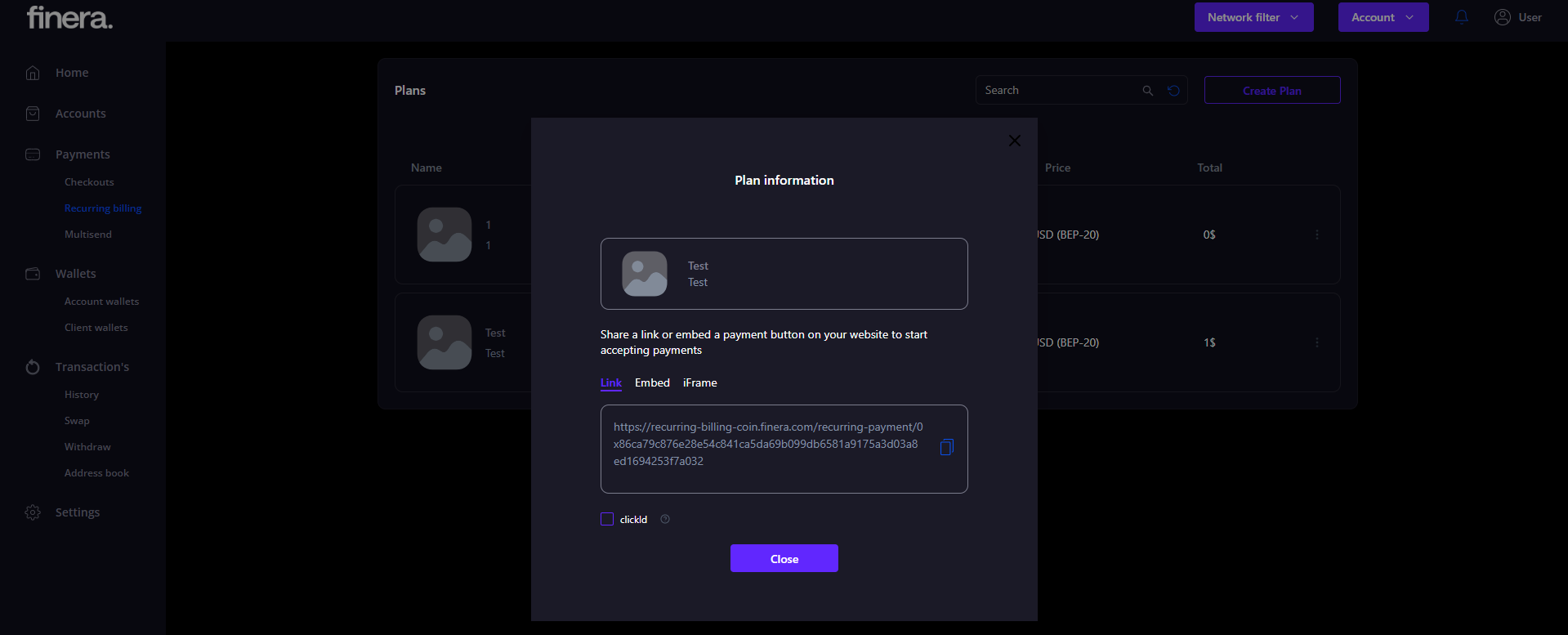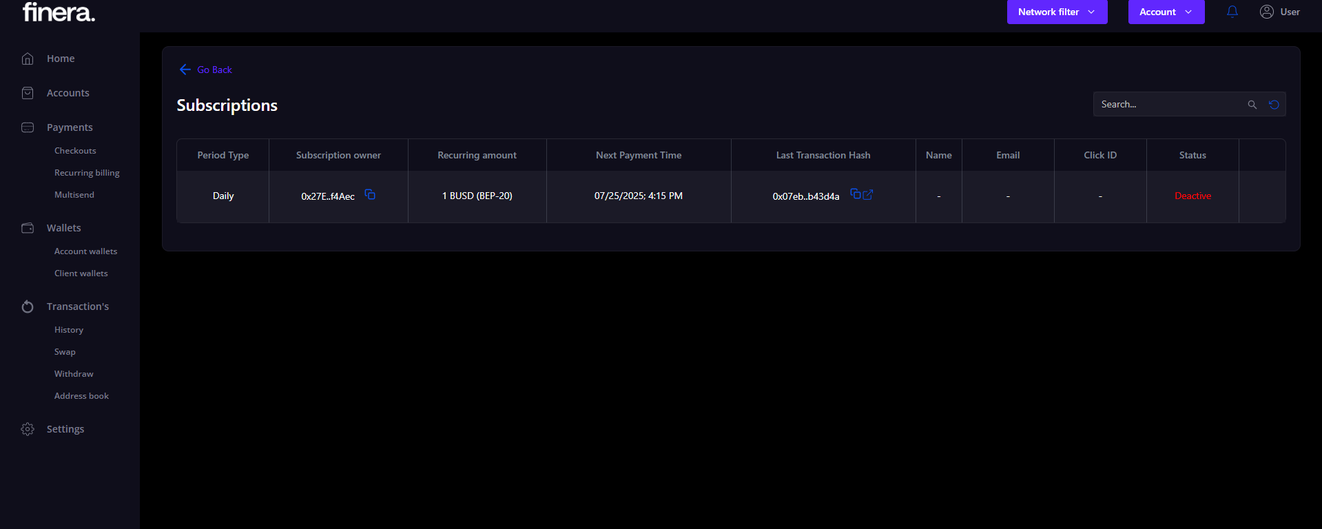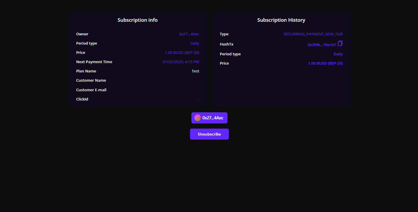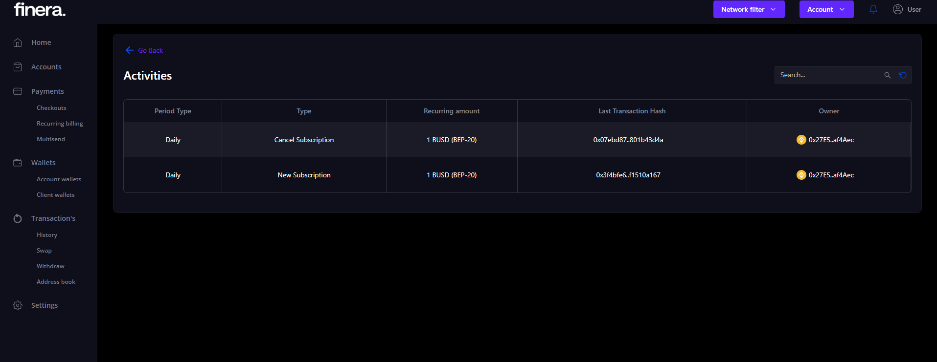 Recurring billing is a payment model used when a subscription business charges a customer's crypto wallets for products or services on a regular billing schedule.