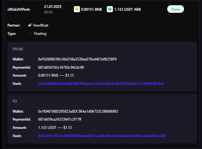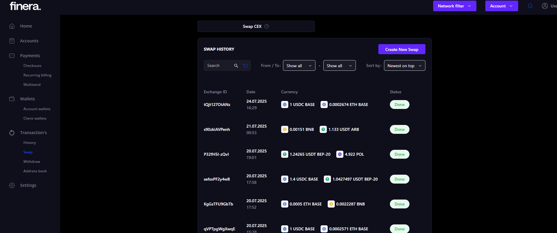 Search - you can search for swaps by Exchange ID, wallet and hash.