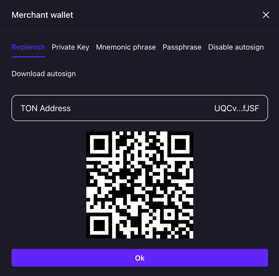 Replenish - generate QR-code for wallet replenishment.