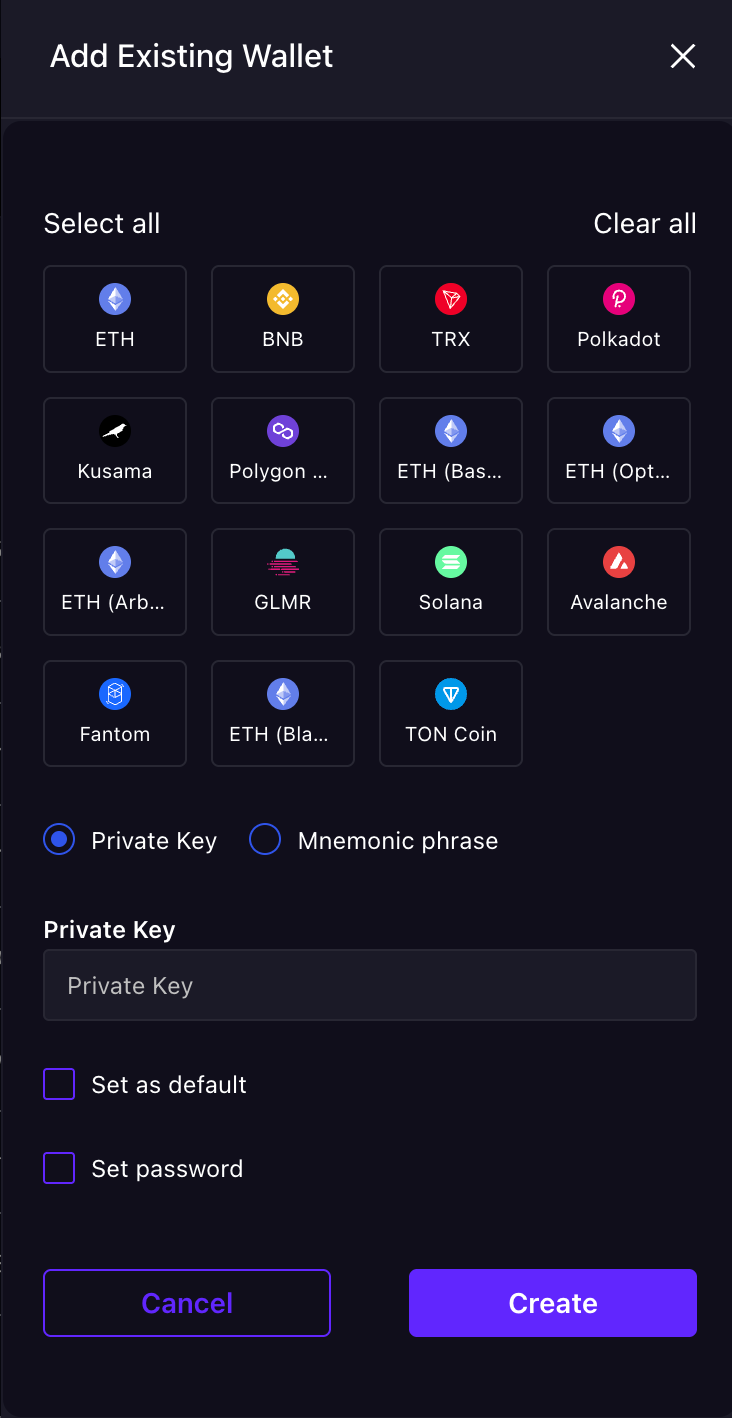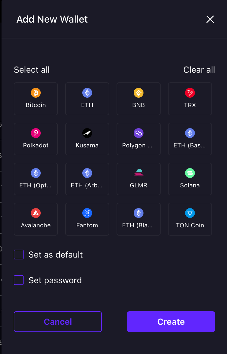 Set as default - the created wallet will become default if you select this option.