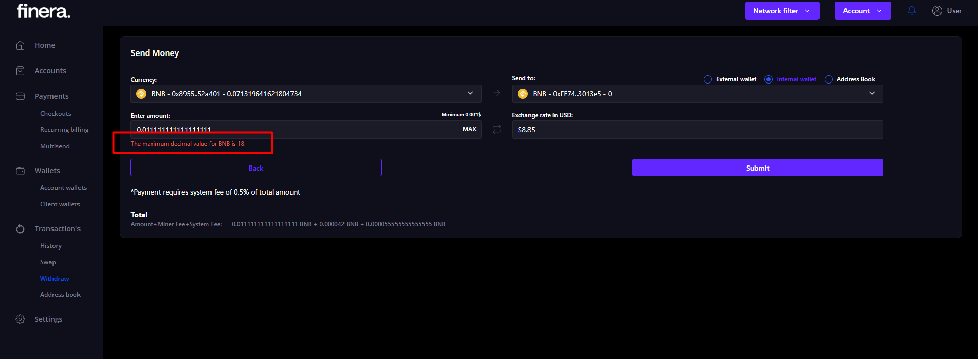All commissions are estimated upon withdrawal and withdrawn from the wallet outside the withdrawal amount. That is, the user displays exactly as much as he wanted.